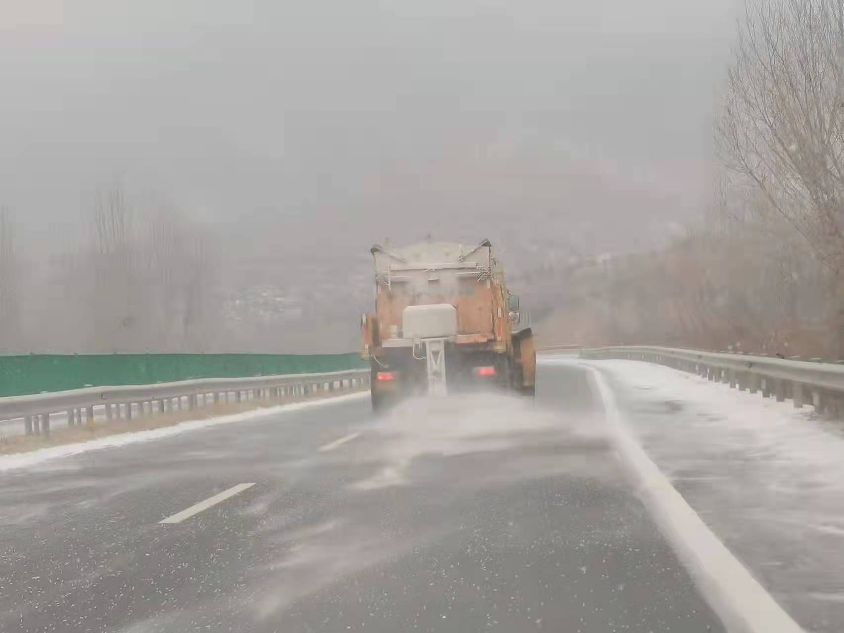 一方面安排巡查人員上路查看路面雪情,另一方面調動養(yǎng)護人員、機械迅速到位,及時對積雪較厚的路段實施除雪車機械除雪,并用滾刷及時清掃,同時播撒融雪劑。目前京新、京藏、海張高速降雪路段路面見黑符合通行條件,降雪還在持續(xù),中心養(yǎng)護隊伍始終堅守在一線,保證高速公路的暢通。